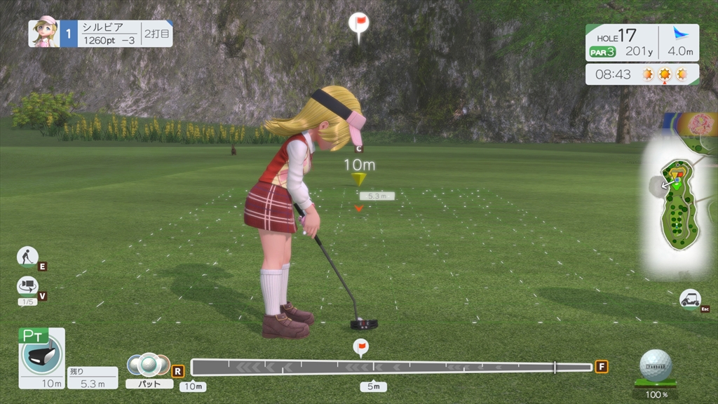 女性キャラクターで350ヤードは本来あり得ない位の数字。一応調べたら近年では女子プロでも通年で290ヤード平均のプレイヤーは居るみたいだけど。