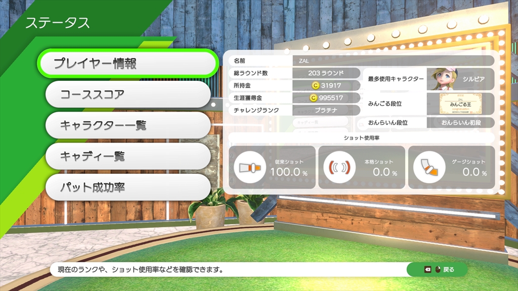 ざるたんは今のところひとりプレイ用の『ひとりでGOLF』だけしかプレイしてないんだけど、色んな要素が解除出来たらオンラインはやってみようかな、って思ってる。