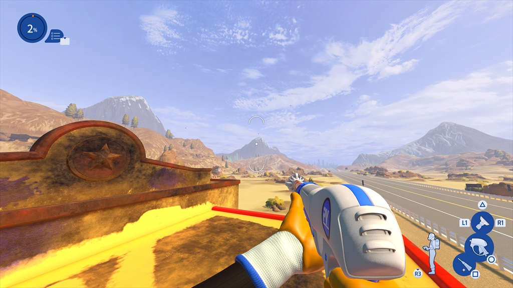 PowerWash Simulator 2は簡単に言うと高圧洗浄機を使って、なにをどうしたらこんな汚れ方するんだ、って建物とか乗り物とかを洗浄してくゲーム。視点は1人称視点で、銃の代わりに高圧洗浄機を持ったFPS的な操作性なんだ。