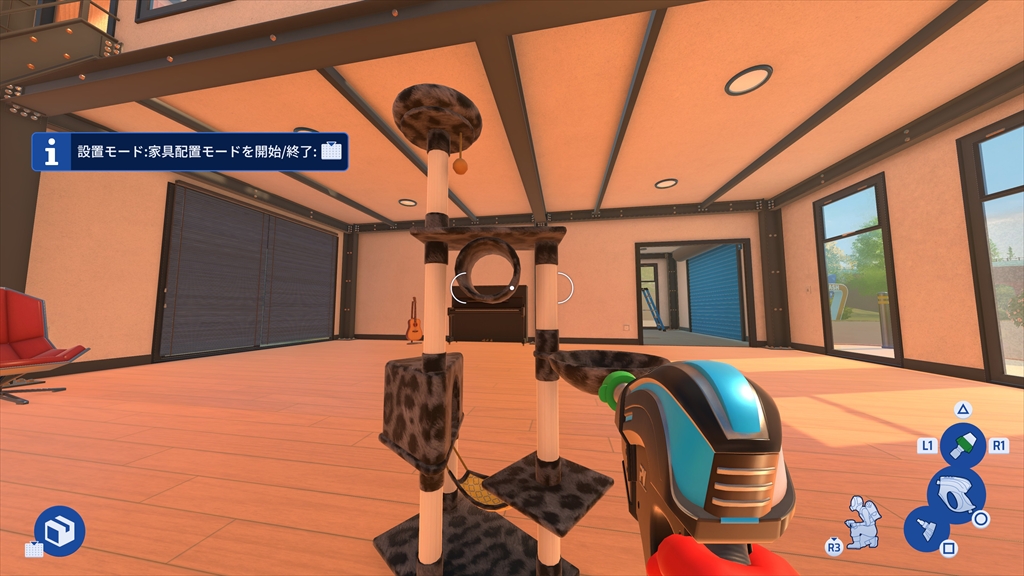 家具を購入すると何故か全体が汚れに包まれた状態で届くから、高圧洗浄機で洗うと、配置出来るようになる。さっきの画像ではネコタワーをスペースのど真ん中に設置してるんだけど、ソファとかピアノとか色んな家具があるから、並べて眺めるのも楽しいと思う。